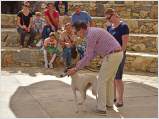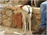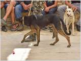 Auffällig viele junge Leute stellten ihre Hunde aus, auch Familien mit kleinen Kindern, die sich zwischendurch mit den Vierbeinern beschäftigten. Alle Hunde waren gesund, gut gepflegt und offenbar gut sozialisiert. Eine zweite Gruppe von Hundebesitzern stellten die traditionellen Jäger und Schäfer dar. Im letzten Jahr waren einige von ihnen zur Ausstellung erschienen, ohne ihre Hunde vorzustellen, da sie die Bedingungen, wie Impfung oder Kennzeichnung durch Microchip nicht erfüllten, oder weil ihre Hunde kupierte Ohren hatten. In diesem Jahr brachten sie ihre jungen Hunde zur Anerkennung - gesund, geimpft, mit Microchip und intakten Ohren. Auch wenn es offensichtlich war, daß es für sie vollkommen neu war, mit so vielen Menschen und anderen Hunden konfrontiert zu werden, war es doch sehr erfreulich, diese schönen Hunde zu sehen. Daß ihre Besitzer, deren tief verwurzelte Kultur und Mentalität wesentlich dazu beigetragen haben, den Kritikos Lagonikos als Rasse über Jahrtausende zu erhalten, jetzt den "modernen" Weg mitgehen, läßt auf eine gute Zukunft für die Rasse hoffen.