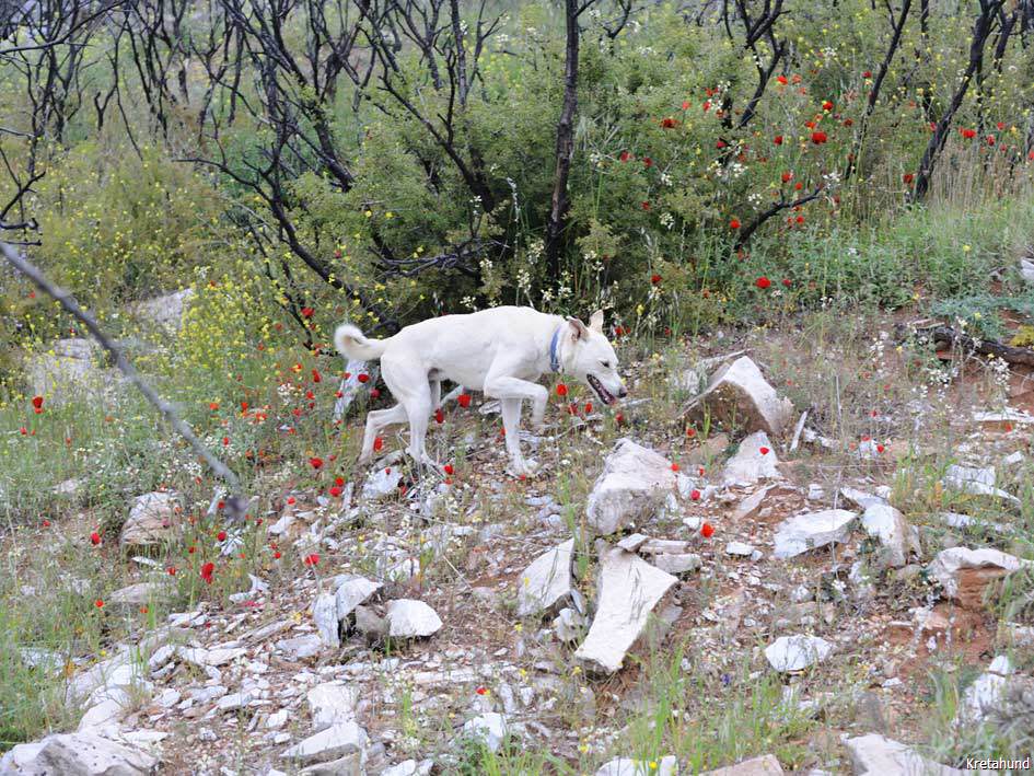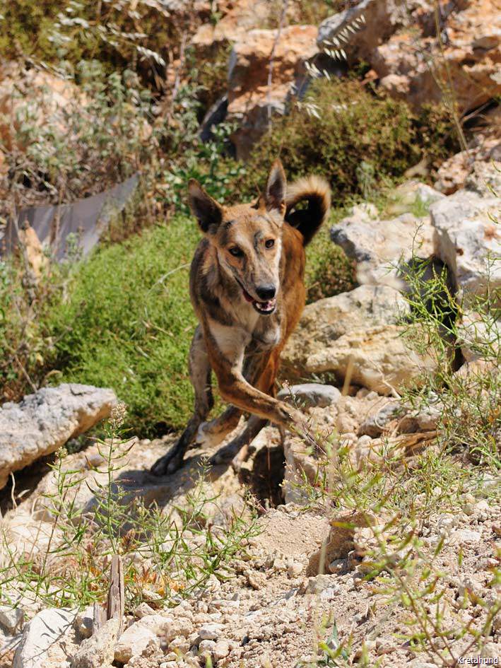 Die Hasenjagd auf Kreta stellt aufgrund der extremen Geländeverhältnisse und des Klimas besonders hohe Anforderungen an die Hunde. Die Härte und Schärfe, die sie dabei an den Tag legen, steht in krassem Gegensatz zu ihrem sonstigen Verhalten. Während der Jagsaison von Mitte September bis in den April fahren die Jäger mit einem oder zwei Hunden in abgelegene Gebirgsregionen. Gelegentlich werden zusätzlich junge Hunde zur Ausbildung mitgenommen. Die Jagd beginnt im Morgengrauen und dauert viele Stunden, oft bei Temperaturen um die 40°. Die Hunde jagen mit allen Sinnen. Der Jäger postiert sich meistens auf einem Felsen und kann von dort seine Hunde, die immer wieder Blickkontakt mit ihm aufnehmen, durch optische und verbale Signale aus großer Entfernung führen. Sie suchen mit der Nase die Spur des Hasen, der sich in Felsspalten oder im Dornengestrüpp versteckt. Dabei verfolgen sie ohne Spurlaut die frischeste Fährte, die direkt zum Versteck des Hasen führt. Die Hunde arbeiten ruhig und leise, sie dürfen bei aller Jagdmotivation nicht hektisch werden, sondern müssen sich konzentrieren, um keine Energie zu verschwenden. Die trockene Witterung, die hohen Temperaturen und der oft sehr starke Wind erschweren das Auffinden der Beute, da die Duftmoleküle, vor allem auf dem kahlen Fels, rasch zerstört werden. Ein großes Problem stellt auch der Staub dar, den die Hunde zwangsläufig mit der Nase aufnehmen und der somit Geruchssinn und Atmung beeinträchtigt und die Hunde zu häufigem Niesen zwingt. Der Kritikos Lagonikos verfügt jedoch über eine Jagdtaktik, die von den Kretern "Anemistos" genannt wird. Es bedeutet "mit dem Wind - Erfassen der Luft". Dazu bleiben die Hunde stehen, nehmen die Nase hoch, stellen sich manchmal auch auf die Hinterbeine und bewegen sich gegebenenfalls im Kreis. Sie saugen den Geruch der Beute mit Nase und oft leicht geöffnetem Fang ein und orten so die Beute. Man kann gut sehen, wie sie dabei die "Backen aufblasen" und den Geruch regelrecht "kauen". Eine weitere erfolgreiche Taktik besteht im Belecken des Untergrundes, um die wenigen noch vorhandenen Reste der Fährte besser aufnehmen zu können. Am lebhaften Rutenspiel der Hunde erkennt der Jäger, wenn sich die Beute in unmittelbarer Nähe befindet. Mit gespitzten Ohren lauschen sie auf jede Regung ihres Opfers. Währenddessen kommunizieren die Hunde über ihr Rutenspiel miteinander, und das plötzliche Erstarren eines Hundes, mit hoch aufgeringelter Rute, zeigt dem Jäger, daß das Versteck gefunden wurde. Wenn der Hase aufgejagt worden ist, beginnt die Hatz über scharfkantige Felsen und dornigem Bewuchs, wobei kurz der "Kampfschrei", ein hohes Bellen, zu hören ist. Dabei vollführen die Hunde atemberaubende Sprünge und Wendungen, um dem hakenschlagenden Hasen den Weg abzuschneiden. Oft müssen tiefe Schluchten und meterhohe glatte Felswände überwunden werden. Mit Eleganz und Leichtigkeit bewegen sich die Hunde in dem schwierigen Gelände und erreichen dabei auf kurzen Distanzen Geschwindigkeiten von ca. 70 km/h. Die Hunde arbeiten miteinander und die Erfahrung lehrt sie "wie der Hase läuft". Wenn es ihnen nicht gelingt, den Hasen auf den ersten 100 metern im Lauf zu packen, verfolgen sie ihn noch ca. 500 bis 1000 meter und kehren dann zum Jäger zurück. Die Hunde wissen aus Erfahrung, dass ihre Chancen mit der Entfernung geringer werden und begeben sich auf eine neue Suche. Wenn ein Hund die Beute gefasst hat, apportiert er sie seinem Herrn, ohne daß die anderen Hunde versuchen, sie ihm streitig zu machen. Die traditionelle Jagdweise ohne Gewehr ist heute nicht mehr erlaubt. Die Jäger müssen über viel Erfahrung und gutes Timing verfügen, um den Hund beim Schuß nicht zu verletzen, da dieser sich sehr nah hinter der Beute befindet, und oft hat der Hund den Hasen bereits gefangen, bevor der Jäger die Möglichkeit zum Schuß hat.