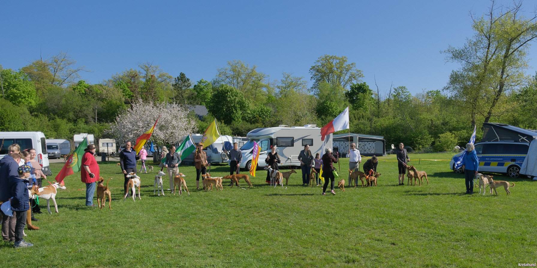 In diesem Jahr fand die Jahresausstellung der mediterranen Rassen auf der Windhundrennbahn in Greppin statt. Bei einer Meldezahl von 28 Hunden waren, mit Ausnahme des Podengo Portugues, alle Rassen der vom DWRV betreuten Rassen der Gruppe 5 vertreten. Der sympathische und humorvolle Zuchtrichter Jan Coppens aus den Niederlanden nahm die Bewertung der ausgestellten Hunde mit großer Sorgfalt und viel Einfühlungsvermögen vor und offenbarte großes Interesse und Sachkenntnis auch beim Kritikos Lagonikos. Er ließ es sich im Ehrenring nicht nehmen, das Publikum über die Herkunft und die Besonderheiten dieser Rasse zu infomieren.