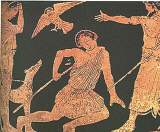 Artemis war die jungfräuliche Jägerin. Wer auch nur den Versuch machte, sie zu erobern, bekam ihre Rache zu spüren. So wurde der kretische Jäger Siproites in eine Frau verwandelt, nachdem er Artemis beim Baden beobachtet hatte. Für das gleiche Vergehen wurde Aktaion, der vom Kentauren Chiron zum Jäger erzogen worden war, von der Göttin in einen Hirsch verwandelt. Sie hetzte seine eigenen fünfzig Jagdhunde auf ihn, die ihn in Stücke rissen. Der Dichter Ovid nennt uns in seinem Gedicht über Aktaion Namen und Herkunft der Hunde: Der weise Ichnobates (Spürhund), ein Kretischer Jagdhund; Melampus (Schwarzfuß), aus Spartischer Zucht; Dorceus, Pamphagus und Oribasos aus Arkadien; Nebrophonos, Theron, Lailaps und Pterelas sind unübertroffen in ihrer Schnelligkeit; Agre (Jäger) zum Aufspüren; Hylaeus (Waldmann), kürzlich von einem Bären verwundet; Nape, eine schlanke Hündin, deren Vater ein Wolf war; Poemenis; Harpyia Sicyonius; Ladon; Dromas; Canache; Tigris; Sticte; Alce; Asbolos; Leucon; Lycisce; Cyprius; Lacon; Aello; Thoos; Melaneus; Harpalos; Labros und Argiodus hatten einen Kretischen Vater und eine Spartische Mutter; Hylactor; Melanchaetes; Theridamas; Oresitrophus und einige mehr.
