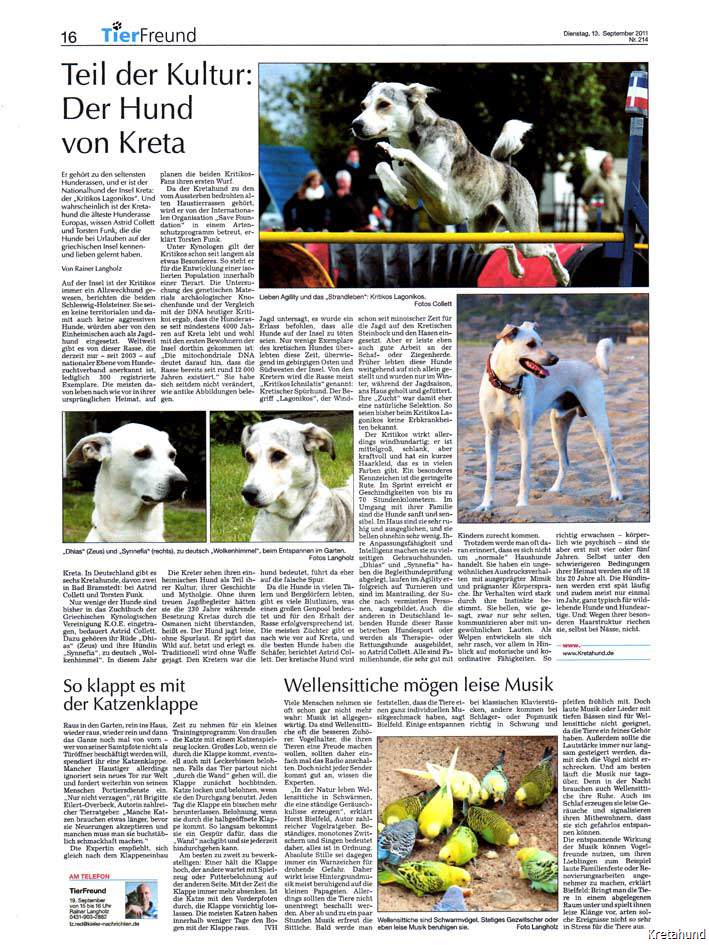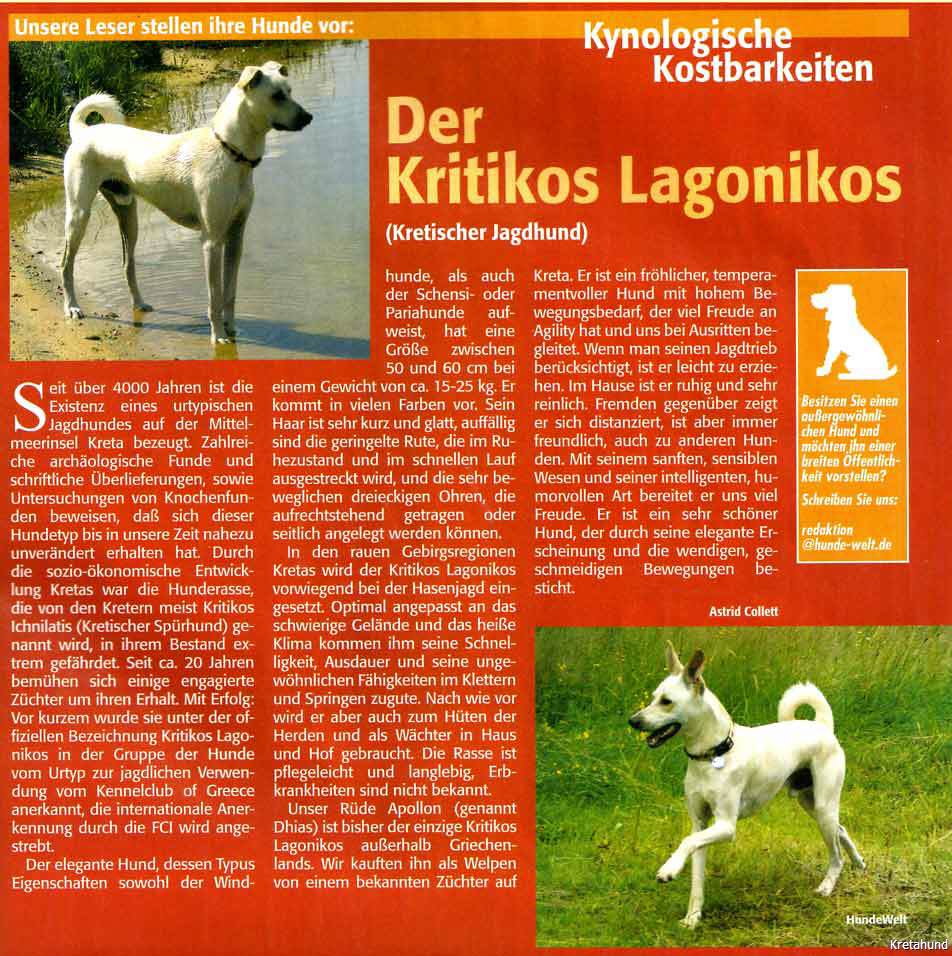 Ein kurzes Portrait über den Kritikos Lagonikos erschien im März 2005 in der Zeitschrift "Hunde-Welt".