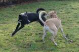 Bei unserem Treffen zum zweiten Geburtstag der "Welpen" am 11.2.2024 in der Wildeshausener Geest konnte Mo bedingt durch den Karneval im Rheinland und der damit verbundenen Pflichten seines Herrchens André leider nicht dabei sein. Aber Pelle wiederzusehen war ein tolles Erlebnis, er hat uns und seine ehemalige Hundefamilie sofort wiedererkannt und wir hatten alle viel Spaß.