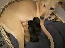 Alle Welpen waren von der ersten Minute an vital und agil und entwickelten sich prächtig. Wir haben eine Hündin und zwei Rüden! Fouria ist die beste Hundemutter, die man sich nur vorstellen kann. Sie kümmert sich vorbildlich und instinktsicher um ihre Babys und ist dabei sehr souverän.
