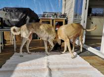 Mitte Dezember war es dann soweit - die beiden "Verlobten" hatten ihr erstes richtiges Date. Wie es bei so ursprünglichen Hunden nicht anders zu erwarten war, klappte es ohne Probleme, auch das Nachdecken zwei Tage später.