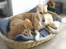 Leider hatten wir nicht das Glück, Nachwuchs von Synnefia und Dhias zu bekommen. Synnefia ließ sich von Dhias, mit dem sie in unserem kleinen "Rudel" aufgewachsen war, nicht decken. Ein anderer Rüde stand uns nicht zur Verfügung. Als Dhias dann 2014 plötzlich nach einer Milzruptur verstarb, mußten wir die Hoffnung auf Welpen aufgeben.
