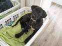 Das Welpenzimmer wurde eingerichtet und Fouria liebte ihre Himmelbett-Wurfkiste.
