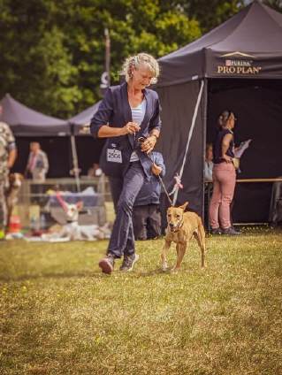 Auch in diesem Jahr nahmen wir an der German Winner Show des VDH in Gelsenkirchen teil, die wieder im Windhundstadion Emscherbruch stattfand. Die Rasse Kritikos Lagonikos wurde am Sonntag, dem 27. Juli 2025 von Klaus Strack gerichtet. Außer Antara in der Championklasse hatte er einen Rüden in der offenen Klasse zu bewerten: "Quality Hounds Aiantas" ist im November 2024 aus Kreta nach Deutschland importiert wurden, seine Züchter Maria Bouchlaki und Nikos Anetakis haben diesen wertvollen jungen Rüden wegen bereits vorhandener Nachzucht vertrauensvoll in die Hände von Sandra und Oliver Giesinger gegeben. Er konnte mit der Bewertung Vorzüglich 1 als bester Hund der Rasse den Titel German Winner 2025 erringen und bekam die Anwartschaft auf den Deutschen Schönheitschampion CAC. |