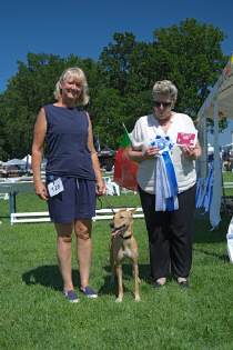 In diesem Jahr fand nach einer Pause von 3 Jahren am 10. und 11.08.2024 wieder das Windhundfestival im Reitstadion Donaueschingen statt. Mit 1800 gemeldeten Windhunden aller Rassen aus vielen Ländern war es die größte Windhundausstellung der Welt. Es war zudem ein Jubiläum: 30 Jahre Sighthoundfestival Donaueschingen! Antara bekam von der Richterin Gabriela Veiga aus Portugal mit dem Formwert Vorzüglich 1 die Anwartschaft auf den Deutschen Champion und als bester Hund der Rasse (BOB) den Titel: "Jubiläumssieger Donaueschingen 2024"