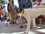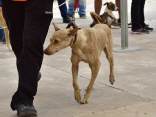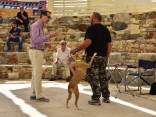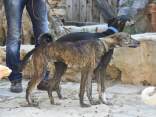 Die 2. Zuchtschau für die Rasse Kritikos Lagonikos wurde am 4. September 2016 vom Kritikos Lagonikos Club Kreta (OKLA) durchgeführt. Das Minoische Theater des Reitvereins Karteros bei Heraklion bot eine perfekte Kulisse für die Vorstellung dieser antiken Hunderasse. Mehrere hundert Besucher kamen von ganz Kreta, aber auch dem griechischen Festland und den anderen Inseln, um ihre Hunde für die Zuchtanerkennung und die Eintragung in das Zuchtbuch des griechischen Hundezuchtverbandes K.O.E. beurteilen zu lassen. Diese Aufgabe meisterte der international anerkannte Zuchtrichter Georgos Kostopoulos mit souveränen Bewertungen und freundlichen, verständlichen Erklärungen bei jedem vorgestellten Hund. Er erläuterte den außerordentlich interessierten Zuschauern auf den Rängen des Amphittheaters die Einzelheiten des Rassestandards des Kritikos Lagonikos. Etliche Fragen aus dem Publikum wurden beantwortet, vobei es vor allem um die Kriterien bei der Zuchtauswahl ging. Die vorgestellten Hunde waren hinsichtlich des Rassetyps und bezogen auf die Bedingungen des Rassestandards von deutlich besserer Qualität als im Vorjahr. Entsprechend strenger bewertete der Richter im Hinblick auf die Zuchtzulassung des jeweiligen Hundes. Schließlich bekamen 36 Hunde die Anerkennung und wurden zur Eintragung in das Zuchtbuch gemeldet. Auffällig viele junge Leute stellten ihre Hunde aus, auch Familien mit kleinen Kindern, die sich zwischendurch mit den Vierbeinern beschäftigten. Alle Hunde waren gesund, gut gepflegt und offenbar gut sozialisiert. Eine zweite Gruppe von Hundebesitzern stellten die traditionellen Jäger und Schäfer dar. Im letzten Jahr waren einige von ihnen zur Ausstellung erschienen, ohne ihre Hunde vorzustellen, da sie die Bedingungen, wie Impfung oder Kennzeichnung durch Microchip nicht erfüllten, oder weil ihre Hunde kupierte Ohren hatten. In diesem Jahr brachten sie ihre jungen Hunde zur Anerkennung - gesund, geimpft, mit Microchip und intakten Ohren. Auch wenn es offensichtlich war, daß es für sie vollkommen neu war, mit so vielen Menschen und anderen Hunden konfrontiert zu werden, war es doch sehr erfreulich, diese schönen Hunde zu sehen. Daß ihre Besitzer, deren tief verwurzelte Kultur und Mentalität wesentlich dazu beigetragen haben, den Kritikos Lagonikos als Rasse über Jahrtausende zu erhalten, jetzt den "modernen" Weg mitgehen, läßt auf eine gute Zukunft für die Rasse hoffen. Die Veranstaltung war für uns ein großartiges Erlebnis und wir bedanken uns bei Nikos Anetakis und den Mitgliedern und Sponsoren des OKLA, die diese Zuchtschau organisiert und finanziert haben. Die Teilnahme und auch die Eintragung in das Zuchtbuch waren wieder für alle Aussteller kostenfrei. Unsere Hündin Fouria bekam ihre Zuchtanerkennung, ebenso wie Nika (Ira von Kasotakis), deren Besitzerin Stefanie Thomaschewski mit ihrer Familie extra für die Ausstellung nach Kreta gekommen war.