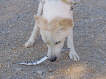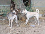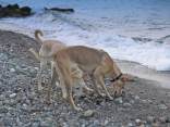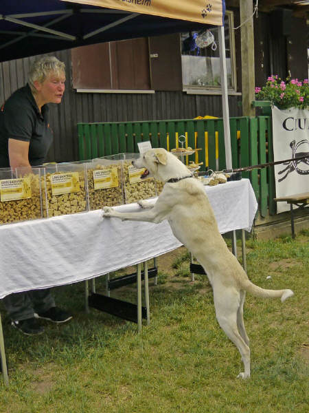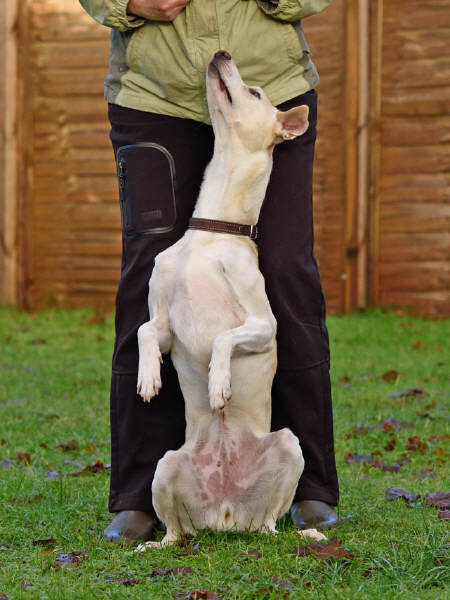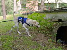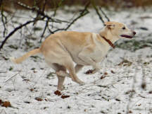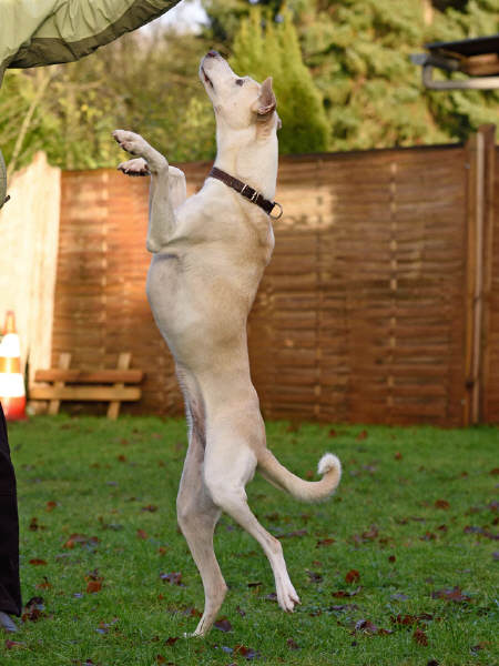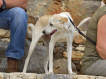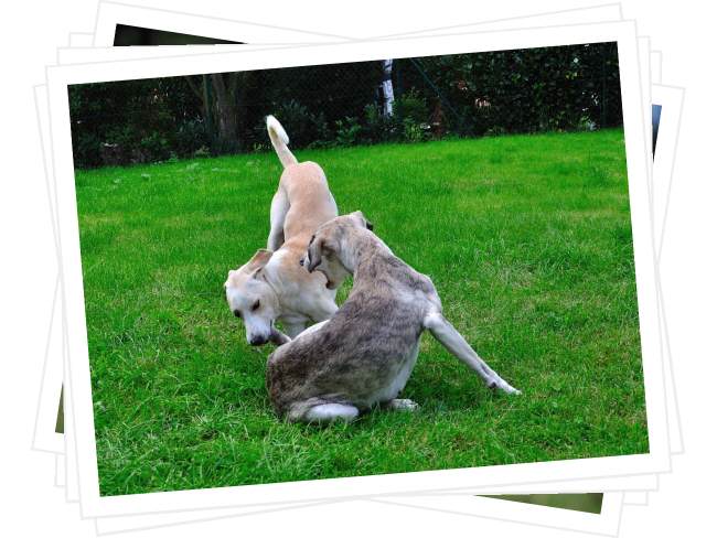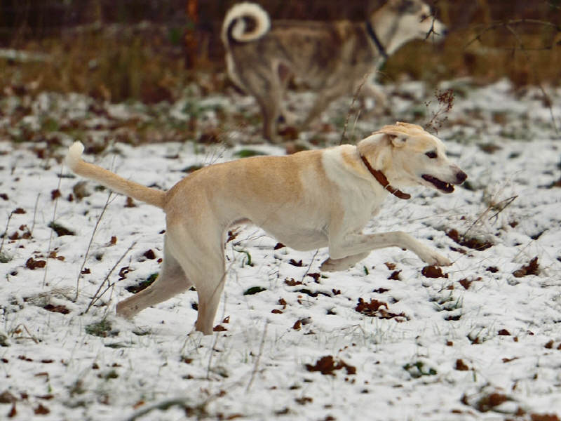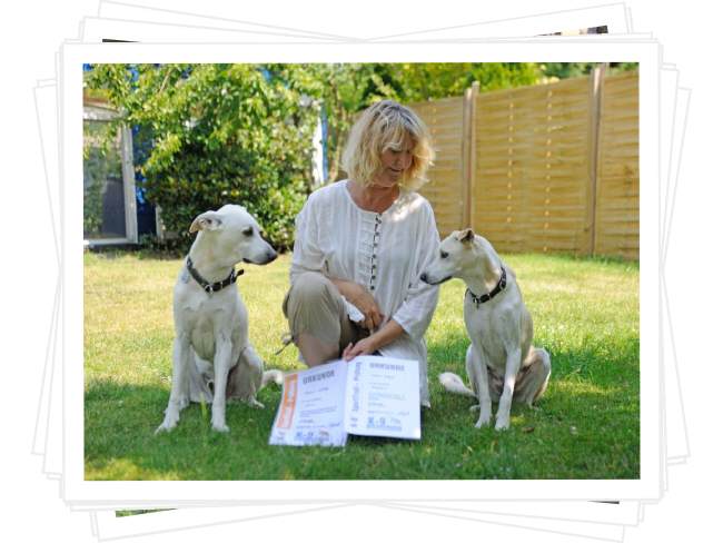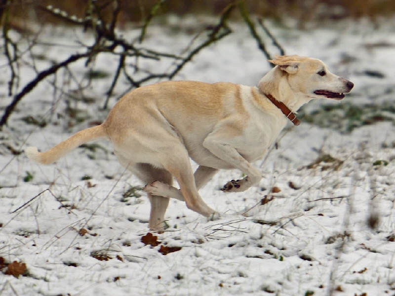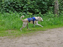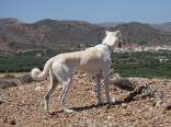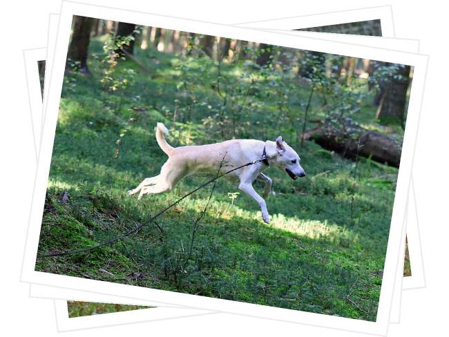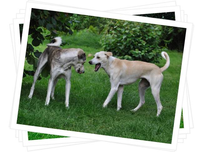 Der Rüde "Kalokairi", sein Name bedeutet "Sommer", wurde im November 2010 in Sitia/Kreta geboren und kam im Alter von ca. 10 Monaten zu uns. Tierschützer auf Kreta hatten ihn nach einer schweren Verletzung gesund gepflegt. Eigentlich wollten wir nur Pflegestelle für Kalli sein, aber er fügte sich so gut in unser bestehendes Rudel ein und bezauberte uns mit seinem Charme, also blieb er bei uns. Er hat Agility ohne Turnierambitionen und Tricktraining gemacht. Höchste Motivation zeigte er beim Mantrailing, war als Sporttrailer Weiß B geprüft. Im April 2017 haben wir Kalokairi auf der Windhund-Zuchtschau auf Gut Basthorst zur Phänotypbestimmung den Richtern des Deutschen Windhundzucht- und Rennverbandes DWZRV (VDH) vorgestellt. So wurde er als erster Hund der Rasse Kritikos Lagonikos in das Register-Zuchbuch des DWZRV eingetragen, unter der Zuchtbuchnummer KL Reg.0-0001 . Leider ist unser Kalli am 17. Oktober 2025 von uns gegangen, in seinem 16. Lebensjahr...