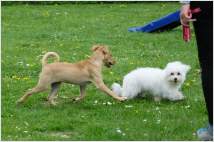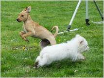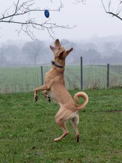 Mit 15 Monaten hat sie bereits die Begleithundprüfung im DVG bestanden und läuft mittlerweile erfolgreich in Agility-Wettbewerben.