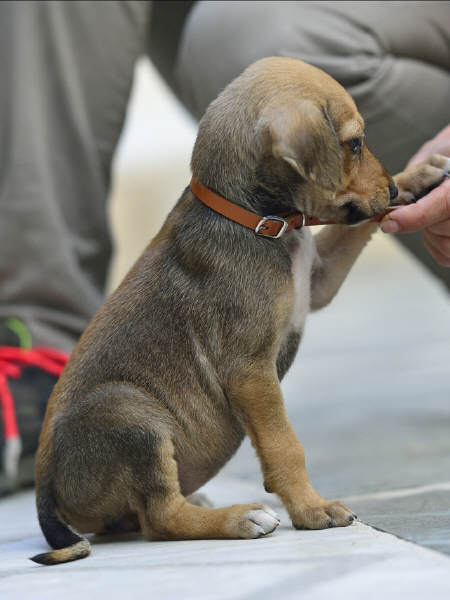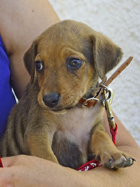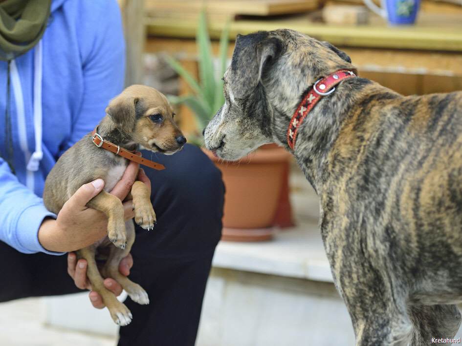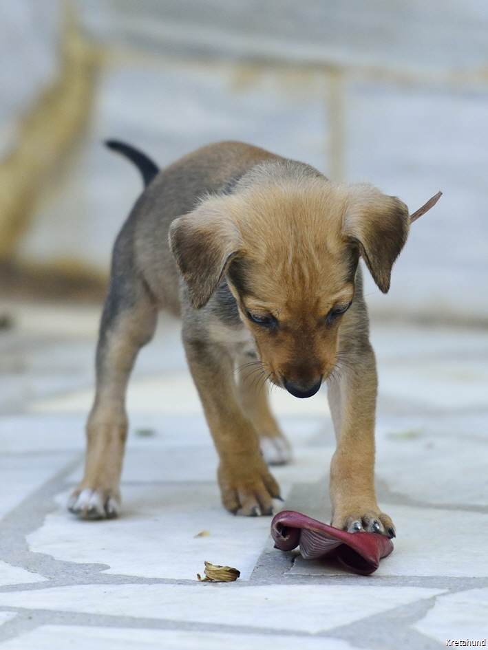 Am 26.9.2014 trat "Fouria", die Ungestüme, in unser Leben. An diesem Tag holten wir sie von ihrem Züchter Giannis Apidianakis im Osten Kretas und nahmen sie mit zu Freunden, die in der Nähe von Athen leben. Dort sollte sie als Jagdhund ausgebildet werden. Aber dann kam es doch anders... Am 16.11.2014 holten wir den kleinen Wirbelwind zu uns!