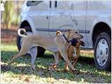 Als Mantrailer hat sie die ersten beiden Prüfungen (E und A) abgelegt.